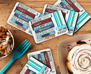 Spread warmth with a Cinnabon gift card, no matter the occasion. Make life a little sweeter for friends and family in need of a little frosting. Gift cards are available for purchase at participating mall bakeries, as well as our online store
