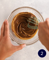 - Melt peanut butter and chocolate for 1 minute. Stir and microwave for another 30 seconds.
